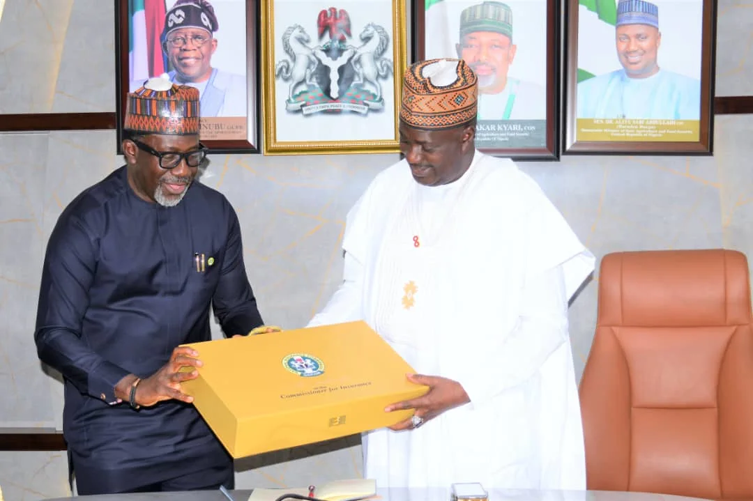 The Federal Ministry of Agriculture and Food Security, has received a delegation from the National Insurance Commission (NAICOM) on a courtesy visit, led by the Chief Executive Officer, Mr. Olusegun Omosehin, in Abuja.