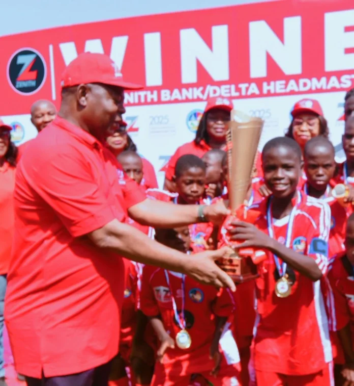 The Governor said, “I am delighted to join you today at the grand finale of the Fourth Edition of the Zenith Bank Delta Headmasters’ Cup Football Competition.