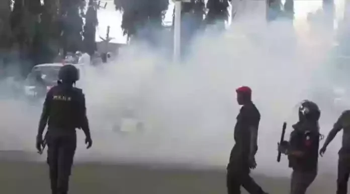 Tear gas was reportedly deployed to disperse the crowd, and protesters were heard saying; “We will come back; when it clears, we will come back,” signaling the group’s determination to return despite the disruption.